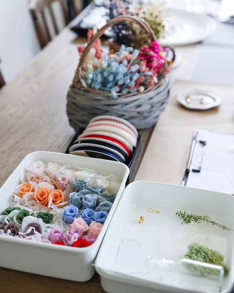 プチギフト作りのポイントを学びながら、毎回楽しく花作品を制作します♪