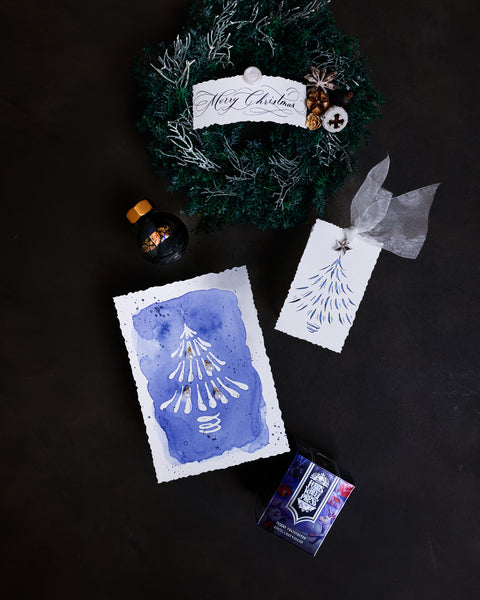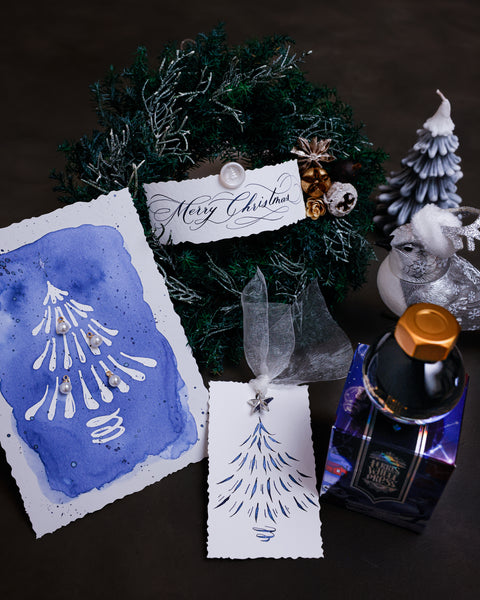 カリグラフィーで「Noël」(フランス語でクリスマス)を筆記しカードを作ります♪(カード3種つくれます)