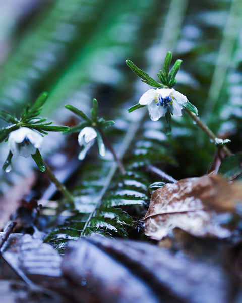 森の奥で、ふわっと光るように咲く“セツブンソウ”。